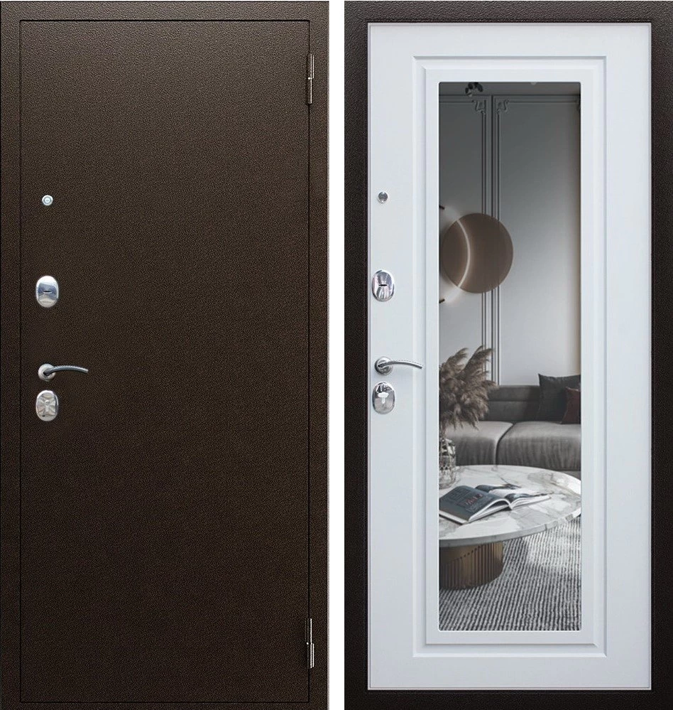Надежная входная Дверь Комфорт с зеркалом премиум класса по цене 30 910 руб. Большая толщина стали защитит от проникновения в ваш дом, квартиру или коттедж. Используется очень качественная фурнитура: замки, цилиндры, ручки, защелки. Покрытие и отделка двери изготовлено под внимательным контролем производителя. Дверь имеет долгий срок службы и гарантию.
